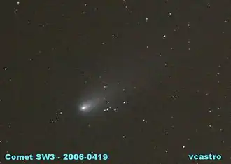 | Komeet 73P/Schwassmann-Wachmann (=SW3). Brokstuk C, 19 april 2006 vanaf Mt Laguna, Californië. Belichtingstijd 55 s. | |