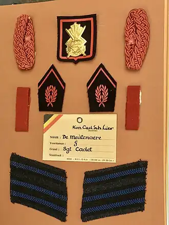 - ↑ De cadetten traden aan voor een traditionele militaire parade bij belangrijke gebeurtenissen in de school, op 11 november, op Koningsdag op 15 november, bij bijzondere gelegenheden zoals het huwelijk van Koning Boudewijn met Fabiola op 15 december 1960 en een koninklijk bezoek aan de stad Lier in 1963.
