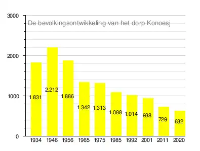 Op 31 december 2020 telde het dorp Konoesj 632 inwoners, een daling ten opzichte van het maximum van 2.212 inwoners in 1946.[2]