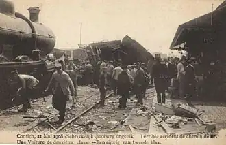 Donderdag 21 mei 1908 is een zwarte bladzijde in de geschiedenis van Kontich-Kazerne. Op deze dag vindt immers de 'treinramp van Kontich' plaats, nabij het station met 41 doden en 320 gewonden tot gevolg. Volgens onderzoeksrechter Vermeer, die de zaak leidde was de hoofdoorzaak van de ramp, "een slechte organisatie en een gebrek aan overeenstemming in het bestuur van de uit te voeren werken".