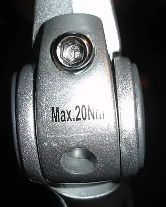 Bij schroeven en moeren staat soms vermeld met welk koppel ze aangezet moeten worden, zoals hier op een fietsstuur.