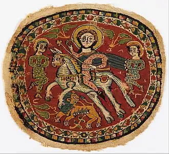 - ↑ Franz Bock, Katalog frühchristlicher Textilfunde des Jahres 1886. Beschreibung von Gobelin-Wirkereien in verschiedenfarbiger Purpurwolle und von vollständig erhaltenen Bekleidungsgegenständen der spätrömischen und frühbyzantinischen Kunstperiode (IV.-VIII. Jahrhundert) aufgefunden in koptischen Begräbnisstätten Oberägyptens. Düsseldorf 1887.