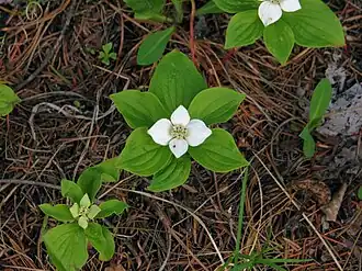 - Cornus canadensis. Noordelijk Noord-Amerika.