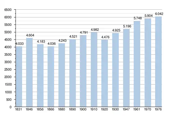 - Bron:NIS - Opm:1831 t/m 1970=volkstellingen op 31 december; 1976= inwoneraantal per 31 december