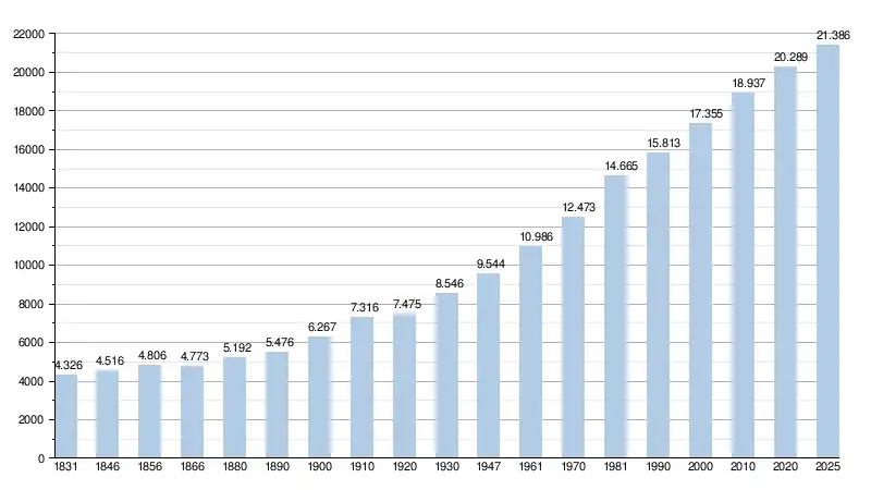Alle historische gegevens hebben betrekking op de huidige gemeente, inclusief deelgemeenten, zoals ontstaan na de fusie van 1 januari 1977.