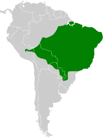 De soort komt voor in het midden en oosten van Zuid-Amerika.[3]