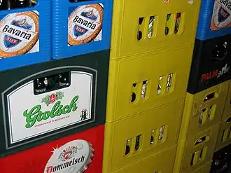 In Nederland is het formaat van bierkratten en limonadefleskratten gestandaardiseerd, zodat kratten van uiteenlopende merken onderling stapelbaar zijn. Op dergelijke kratten zit statiegeld. In Vlaanderen en Nederlands Limburg wordt er niet van een krat gesproken, maar van een 'bak (bier)'. Iedere brouwerij met eigen bierbakken heeft hier een eigen formaat bak, wat logistiek en bij opslag een probleem kan zijn. Ook hier werkt men met een statiegeldsysteem.