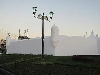 Rondom het paleis bevond zich een dubbele vierkante ommuring van 2-4 meter breed in rode baksteen en een slotgracht. Er waren oorspronkelijk vijf poorten met ophaalbruggen. In 1809 werden de bastions vergroot om een aanval van Nederlandse troepen te kunnen voorkomen. Het paleis werd tijdens de Britse tijd in 1812 door troepen van Thomas Stamford Raffles aangevallen waarbij een kruithuis in het noordoostelijke bastion ontplofte en op 20 juni 1812 toegang verkregen werd. Vier bastions, en een deel van de noordoostelijke en zuidelijke verdedigingsmuur zijn nog aanwezig.[1] Het noordoostelijk bastion dat in 1812 was opgeblazen, is in 2020 herbouwd.