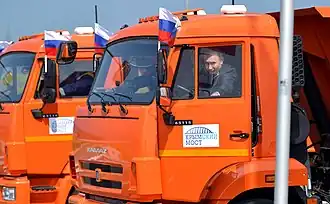 - ↑ a b (en) Putin drives truck over bridge linking Russia to Crimea. PressTV (16 mei 2018). Gearchiveerd op 6 maart 2023. Geraadpleegd op 6 maart 2023.