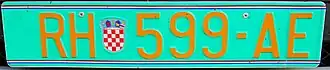 Het Kroatisch kenteken bestaat uit een rechthoekige witte plaat met zwarte letters. Beginnende met een tweeletterige regiocode, gevolgd door het wapen van Kroatië, 3 of 4 cijfers en 2 letters.