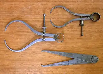 Het model met stelschroef en veer kan heel nauwkeurig ingesteld worden door de kartelmoer te verdraaien. Dit is te zien bij de bovenste twee modellen op de afbeelding. De veerspanning van de ringvormige bladveer boven op het scharnierpunt zorgt ervoor dat de benen de gemeten afstand vasthoudt.