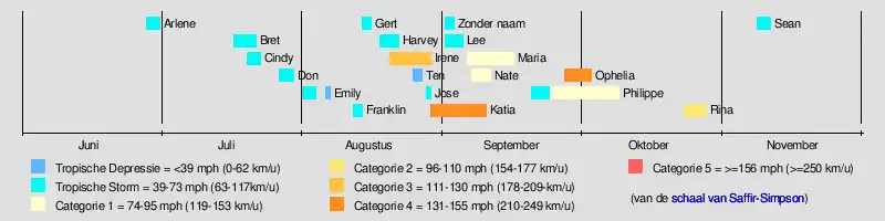 - ↑ Dorst, Subject: G1) When is hurricane season ?. National Hurricane Center (2009). Geraadpleegd op 18 september 2011.