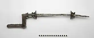 Een ijzeren Romeinse krukas voor nog onbekend gebruik, uit de 2e eeuw AD, is opgegraven in Augusta Raurica, Zwitserland. Het 82,5 cm lange onderdeel had aan één kant een 15 cm lang bronzen handvat, het andere handvat is verloren gegaan.[1][2]