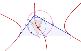 - punten waarvan de voetpuntsdriehoek en om-ceva-driehoek met een vermenigvuldiging op elkaar zijn af te beelden, of gelijkstandig zijn.