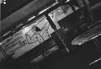 In de daaropvolgende maanden werden echter, ondanks gemeentelijke verboden, regelmatig feesten gehouden in de oude fabrieksgebouwen, die goed bezocht werden en het enthousiasme om het project opnieuw aan te pakken weer aanwakkerden. De situatie escaleerde toen op 7 december 1991 het Rechtsradikale Mutschellenfront (RMF) de hallen van de kledingfabriek binnendrong en voor eigen doeleinden misbruikte.[4] Als gevolg van dit incident kregen de gebroeders Meyer opdracht het pand voor 15 februari 1992 met muren te ommuren. Tegelijkertijd dreigde AEW Energie het pand af te sluiten van het elektriciteitsnet.