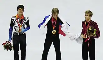 Lambiel op zijn beurt zette de minste kür van de drie neer. De Zwitser wist de score te beperken en kwam tot een resultaat van 152.17 punten, wat hem op een eindtotaal bracht van 231.21. Die score leverde hem het zilver op, terwijl het brons was weggelegd voor Jeffrey Buttle.