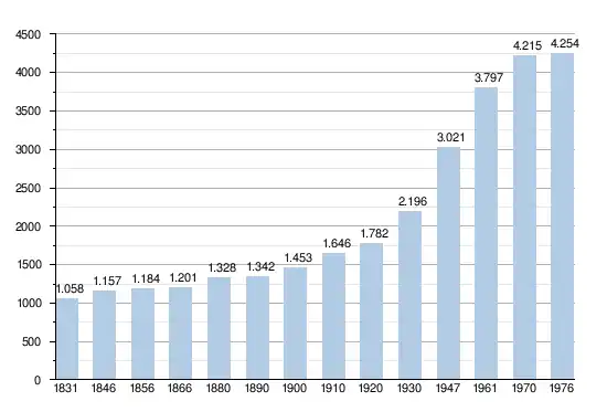 - Bronnen:NIS, Opm:1831 tot en met 1970=volkstellingen; 1976 = inwoneraantal op 31 december