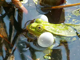 De poelkikker (Pelophylax lessonae) heeft helder witte wangblazen