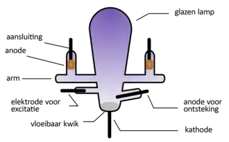 De anode, die uit grafiet of ijzer bestaat, kan daarentegen, zelfs als deze sterk wordt verwarmd, geen elektronen uitzenden. Hierdoor kan de elektrische stroom alleen lopen van de betrekkelijk koude anode naar de zeer hete kathodevlek op de kwikplas, die de elektronen uitzendt. Omgekeerd kan er geen stroom lopen.