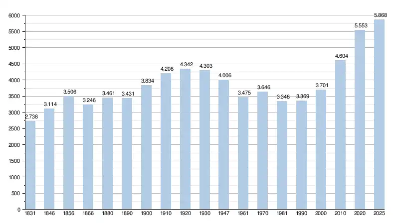 Alle historische gegevens hebben betrekking op de huidige gemeente, inclusief deelgemeenten, zoals ontstaan na de fusie van 1 januari 1977.