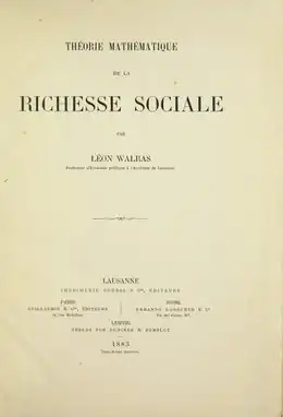 - La Théorie mathématique de la richesse sociale, 1873-1883