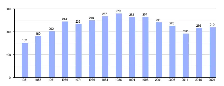 | Bron: Statistics Canada (1951–1986[1], 1991–1996[3], 2001–2006[4], 2011–2016[5], 2021[6]) |