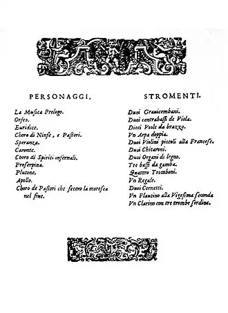 De opera vertolkt de overgang van renaissance naar barokmuziek. De vocale polyfone zang van de renaissance maakt plaatst voor het tekst beklemtonende recitatief en de affect vertolkende aria. Alleenstaande instrumentale delen doen hun intrede als ritornello, toccata en symfonie.