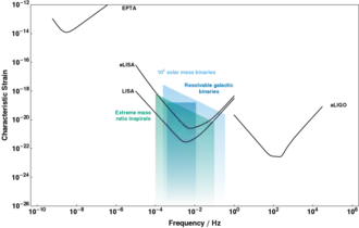 LISA daarentegen is ontworpen om golven met een frequentie tussen de 0,1 mHz en 1 Hz te meten. In deze frequentieband zijn andere processen relevant voor het genereren van zwaartekrachtsgolven, zoals samengevat in de wetenschappelijke doelstellingen van LISA.[3]