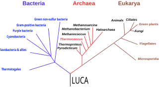De laatste universele gemeenschappelijke voorouder, vaak afgekort als LUCA,[a] is een hypothetisch, eencellig organisme dat de evolutionaire voorouder van alle hedendaagse organismen vertegenwoordigt: de eukaryoten, bacteriën en archaea – de drie domeinen van het leven. Het tijdstip en wijze waarop deze drie domeinen in de loop van de evolutie uit elkaar zijn gegaan is een actief onderzoeksgebied in de evolutiebiologie.