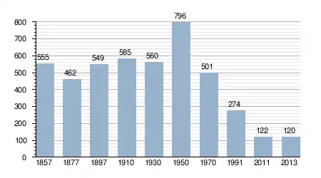 - Bron: INE, 1857-2011: volkstellingen