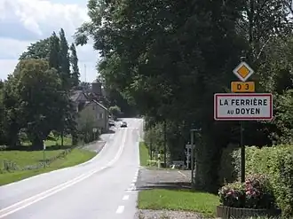 De onderstaande kaart toont de ligging van La Ferrière-au-Doyen (Orne) met de belangrijkste infrastructuur en aangrenzende gemeenten.