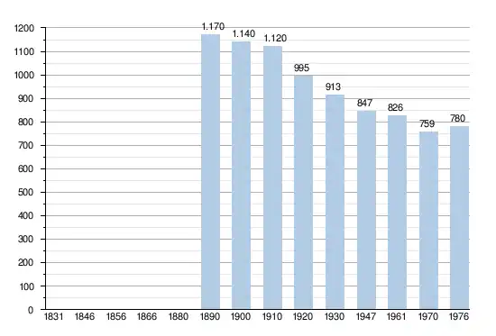 - Bronnen:NIS, Opm:1831 tot en met 1970=volkstellingen