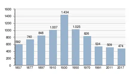 - Bron: INE, 1857-2011: volkstellingen