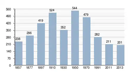 - Bron: INE, 1857-2011: volkstellingen
