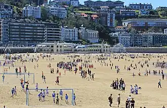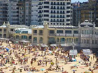 Als in 1887 het strand Playa de La Concha het predicaat "koninklijk" krijgt en jaarlijks in de zomer bezocht wordt door de Spaanse mobnarchie en aristocratie en bourgeoisie uit heel Europa, wordt op het centrale gedeelte van de boulevard, waar nu twee klokkentorentjes staan, een enorme rode houten barak gebouwd die de naam La perla del océano ("de parel van de oceaan") meekrijgt. Aan het begin van de 20e eeuw leeft bij het gemeentebestuur de wens een ander paviljoen neer te zetten, dat meer voldeed aan de smaak van die tijd, en dat het meest geavanceerde centrum voor hydrotherapie in Europa zou zijn. Dit moet naast het koninklijke strandhuisje komen, zo'n 100 meter verderop aan de boulevard. In 1910 ontwerpt Ramón de Cortázar zowel een nieuw paviljoen als een nieuw koninklijk strandhuisje, en in 1912 zijn die afgerond. Vanaf 1924 raakt het gebouw echter in onbruik en vervalt het tot het bijna een ruïne is.