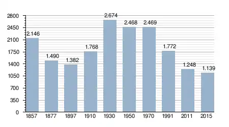 - Bron: INE, 1857-2011: volkstellingen
