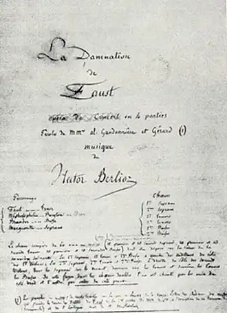 Berlioz ontdekte het meesterwerk van Goethe in 1828 in de vertaling van Gérard de Nerval. Hij was er erg van onder de indruk en zette acht scènes op muziek als Huit scènes de Faust, opus 1. Hij liet het werk drukken, maar probeerde later zo veel mogelijk exemplaren te vernietigen, omdat hij er ontevreden over was geworden.