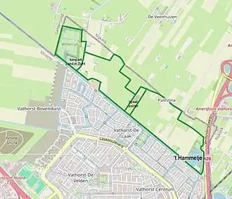 De Laak vormde na de voltooiing van woonwijk Vathorst-Noord de grens met het agrarische gebied. Het project 'Over de Laak' vormde het overgangsgebied van tussen de woonwijk en de grens met de gemeente Nijkerk. Het agrarische gebied van ongeveer 145 hectare werd ontwikkeld naar een groen recreatiegebied met ruimte voor lichte recreatie, nieuwe natuur en behoud van het open polderlandschap.[4] Daarvan is 36 hectare in eigendom van de gemeente Amersfoort. De uitgangspunten recreatie, natuur en behoud van het bestaande polderlandschap gingen ook golden voor de inrichting van het overige gebied dat in bezit is van projectontwikkelaars (ca. 85 hectare) en particulieren (ca. 20 hectare. Over de Laak moest voorkomen dat de recreatieve druk op Arkemheen en het Hoevelakense Bos te groot wordt. Aan de noordzijde vormt het gebied de overgang naar het open landschap en het verder gelegen Natura 2000 gebied Arkemheen. Door het natuurgebied zijn klompenpaden aangelegd, de natte (w)eilanden zijn met bruggetjes en pontjes verbonden. De sloten tussen de bestaande weilanden werden verbreed zodat een natuurlijke vegetatie van afwisselend riet, kruidenrijke moerasvegetatieen ruig en nat grasland ontstond. Het in open verbinding met de Laak staande water fungeert tevens als waterbuffer die overlast bij hevige regenval in de wijk Vathorst voorkomt. Twee kikkerpoelen dragen bij aan de natuurwaarden van dit gebied. Het gebied is opgedeeld in drie deelgebieden: