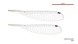 | Vleugel van Labidiosticta vallisi (mannetje) | |||||||||||||||
