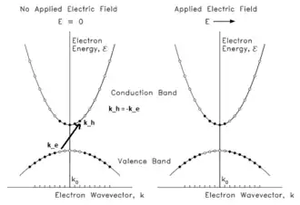 Om te begrijpen hoe elektronen bewegen moet er gekeken worden naar de bewegingsvergelijking. Omdat elektronen zich ook gedragen als golven, zoals aangetoond met de vergelijkingen van De Broglie, is een goed begin om de beweging van een elektron te beschrijven de groepssnelheid van het elektron. De groepssnelheid van een golf is gedefinieerd als vg = dω/dk, waarmee de invloed van het kristal in de dispersie relatie ε(k) zit. Onder invloed van een elektrisch veld E wordt er een kracht op het elektron uitgeoefend en werk verricht. Het werk δε dat verricht wordt op het elektron in een bepaalde tijdsspanne is