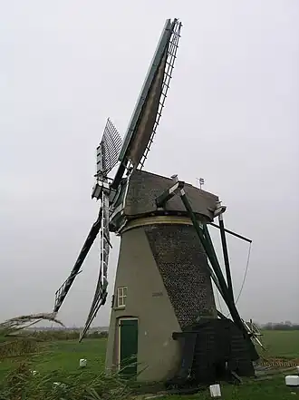 - ↑ Zie het omvangrijke krantenartikel over deze molen: "Levenswerk Gerard van Schie. Lakerpolder wordt nog met windmolen bemalen." Leidse Courant, woensdag 14 augustus 1985, blz. 11.