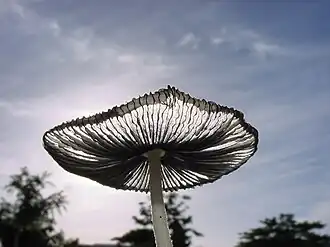 Paddenstoellamellen zichtbaar gemaakt door backlight.
