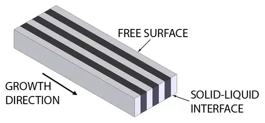 Een schematische weergave van een lamellaire microstructuur in een eutectisch systeem.