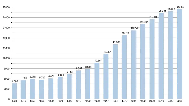 Alle historische gegevens hebben betrekking op de huidige gemeente, inclusief deelgemeenten, zoals ontstaan na de fusie van 1 januari 1977.