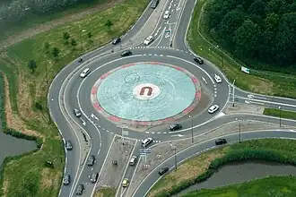 Op de westelijke rotonde is een verkeerstoren geplaatst. Op de oostelijke rotonde is een parkeerplatform met daarop een hoofdletter U geschilderd. De twee rotondes worden verbonden door een weg die aan de zijkanten gemarkeerd is met violetkleurige lichten in de berm. Deze weg loopt onder de A27 door (wat een landing lastig kan maken).