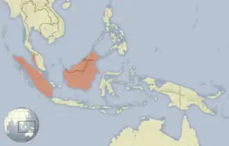 De soort komt voor in Brunei, Maleisië en Indonesië.