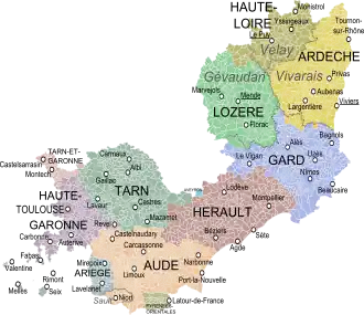 Languedoc (eigenlijk Langue d'Oc) was tot aan de Franse Revolutie een zelfstandige Franse provincie, voortgekomen uit het graafschap Toulouse. Languedoc grensde aan provinciën Guyenne-et-Gascogne in het westen, Auvergne en Lyonnais in het noorden, Dauphiné, graafschap Venaissin en Provence in het oosten en de Middellandse Zee, Roussillon en Pays de Foix in het zuiden. In 1790 werd deze provincie opgedeeld in de departementen Ardèche, Aude, Gard, Hérault en Lozère. De Languedoc is tegenwoordig verdeeld over de regio's Auvergne-Rhône-Alpes en Occitanië.