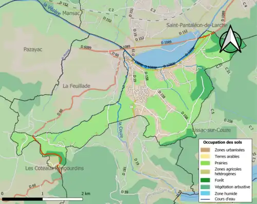 De onderstaande kaart toont de ligging van Larche met de belangrijkste infrastructuur en aangrenzende gemeenten.