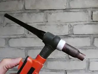 - niet-afsmeltende elektroden: elektroden die doorgaans zijn gemaakt van een materiaal met een zeer hoog smeltpunt, zoals wolfraam; of elektroden die gemaakt zijn van een materiaal dat goed warmte kan geleiden en dat tijdens het lassen gekoeld wordt om smelten te voorkomen;