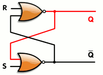 De eenvoudigste latch is opgebouwd uit twee NOR-poorten. De uitgangen zijn dan teruggekoppeld naar de ingang van de andere NOR-poort. Dit wordt een SR-latch (Set-Reset latch) genoemd, zie ook: Latch met poorten.